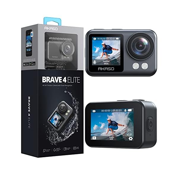 Better Shot Composition and Framing: With the innovative dual-color screen design, AKASO Brave 4 Elite permits you to change framing and monitoring views between back and front. Its vivid front screen can satisfy your selfie need and the 2-inch touch screen makes it easy to use than ever. The built-in Electronic Image Stabilization 2.0 with 6-axis gyroscope delivers steady and smooth videos.