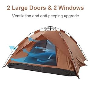 Breathable Design: Two D-Shaped arches and Double Arch on both sides (Mesh Windows) can keep the Air Circulation dry. Both sides bottom have two Mesh vents. The top hook of the Pop-up camping tent can hang with lights.