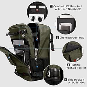 ✔Mulit pockets, reasonable storage: Totally 2 front pockets. The pocket can hold daily items like your keys、cards、wallet can easy take out.The other U-shaped pocket has 2 compartments,enough to fit for your ipad、notebook、power bank and nore your items. The side pocket has separate laptop compartment, size about 18″*11″ c(Large size fits most 17″ Laptop). Mesh side pockets to ensure taller water bottles and umbrella are safe.