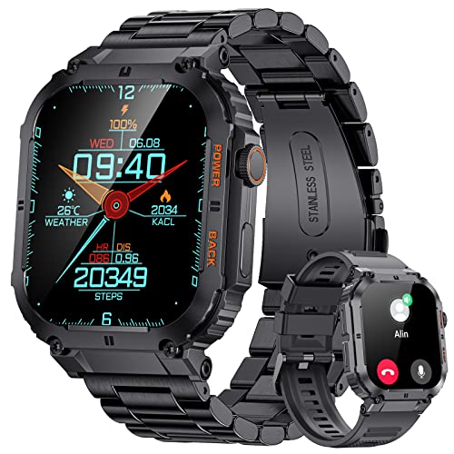 Military Smart Watches for Men with Bluetooth Call,2023 Newest 1.96’’ IP68 Waterproof Tactical Sport Fitness Tracker with Heart Rate, Sleep Monitor,Outdoor Smartwatch for iOS & Android(Black Steel)