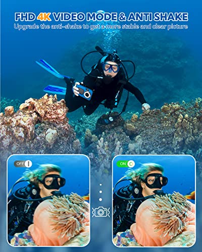 【The 4K video 48MP & Autofocus feature makes shooting sharper.】- This underwater camera has an image resolution of up to 48MP pixels and 4K video resolution, capable of capturing high-quality photos and videos. The upgraded autofocus feature ensures that your photos and videos are at all times sharp and amazing, lightly press the shutter, the the focal point frame in the screen turn from yellow to green, press the shutter again to take photo.