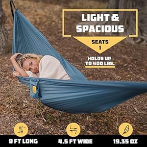 FEATHER LIGHT: Lightweight and convenient at 19.35 oz, the Featherlight is our lightest and most portable hammock, stuffing down to the size of a grapefruit. Take it on a day hike, week long backpacking go back and forth, or even to the beach!